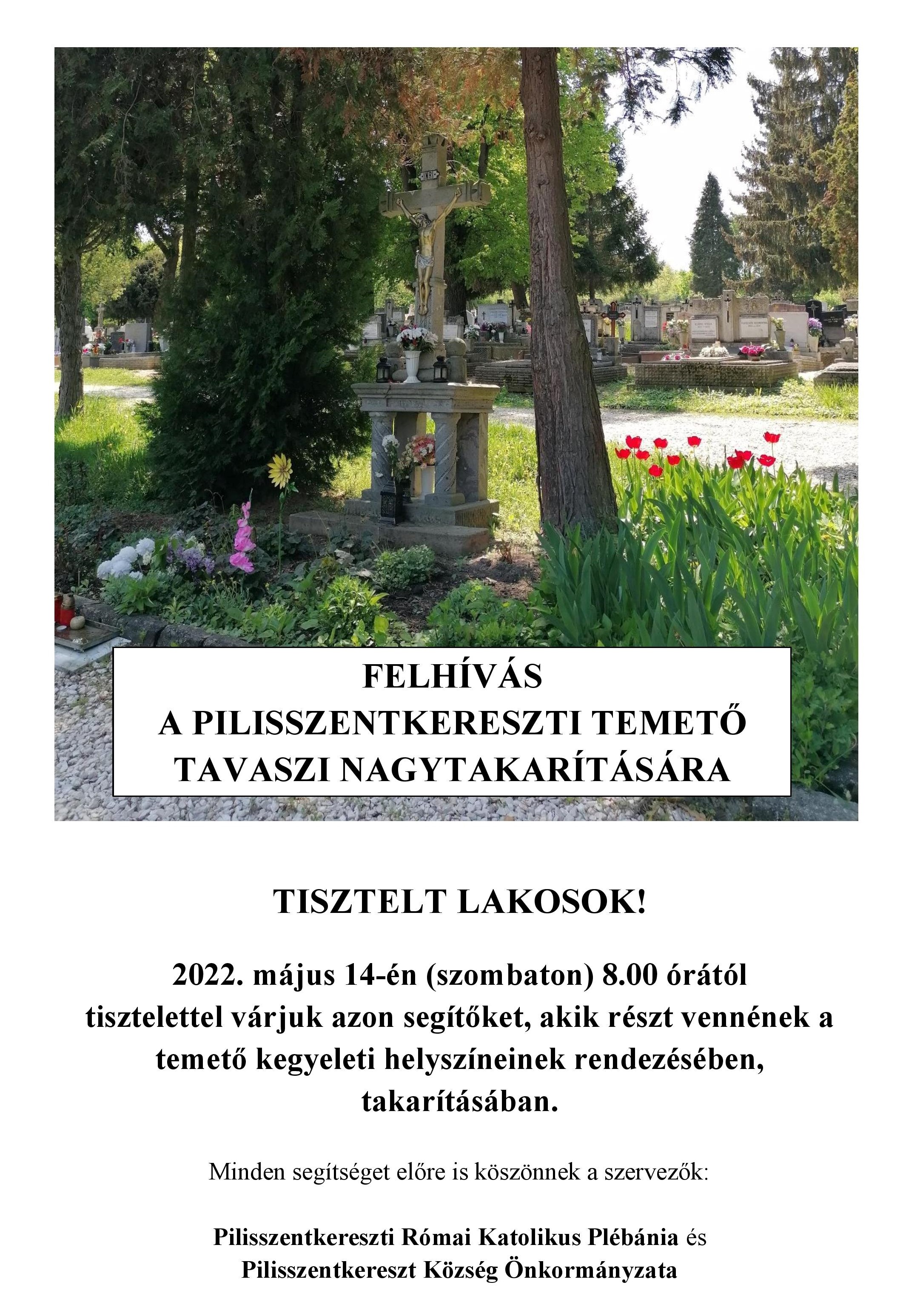 Köszönetet mondunk mindenkinek, aki 2022. május 14.-én segített a pilisszentkereszti temető tavaszi nagytakarításában.