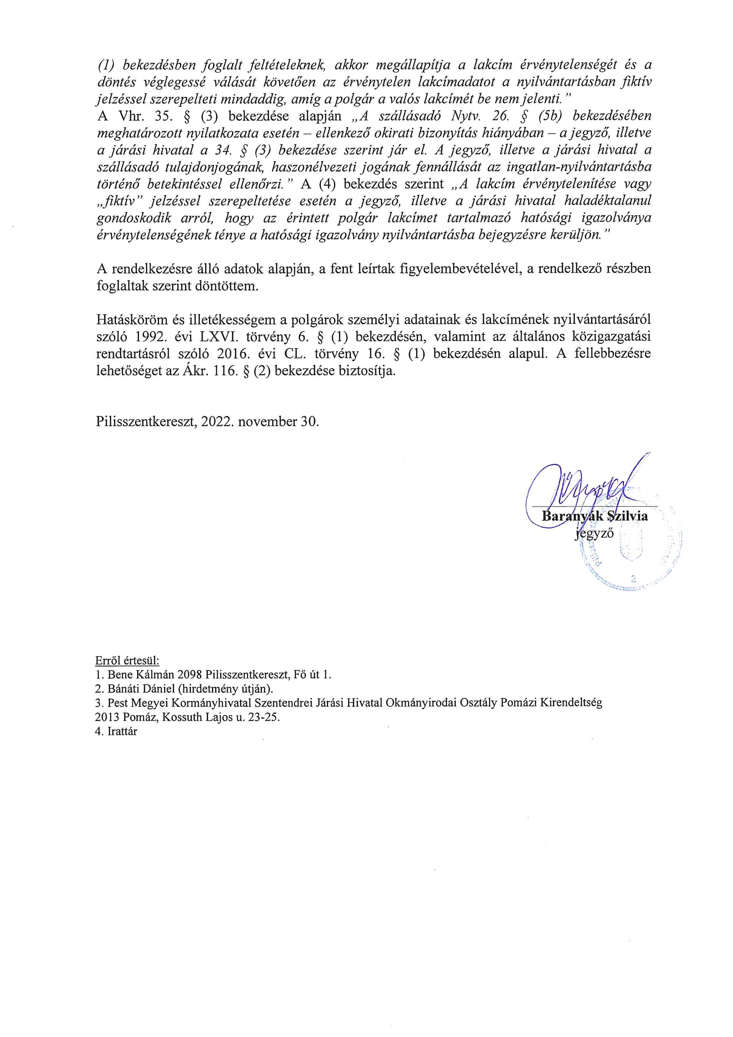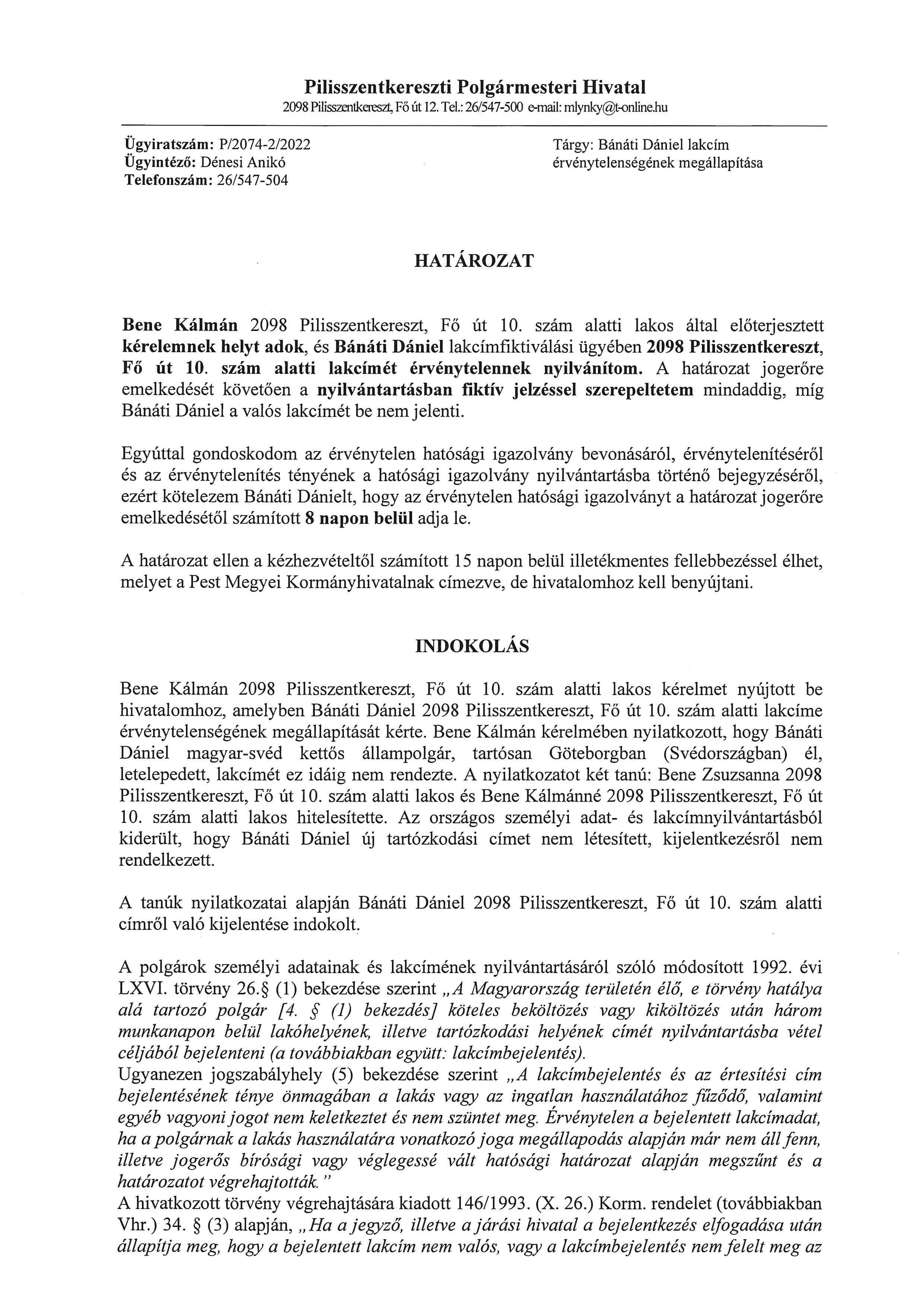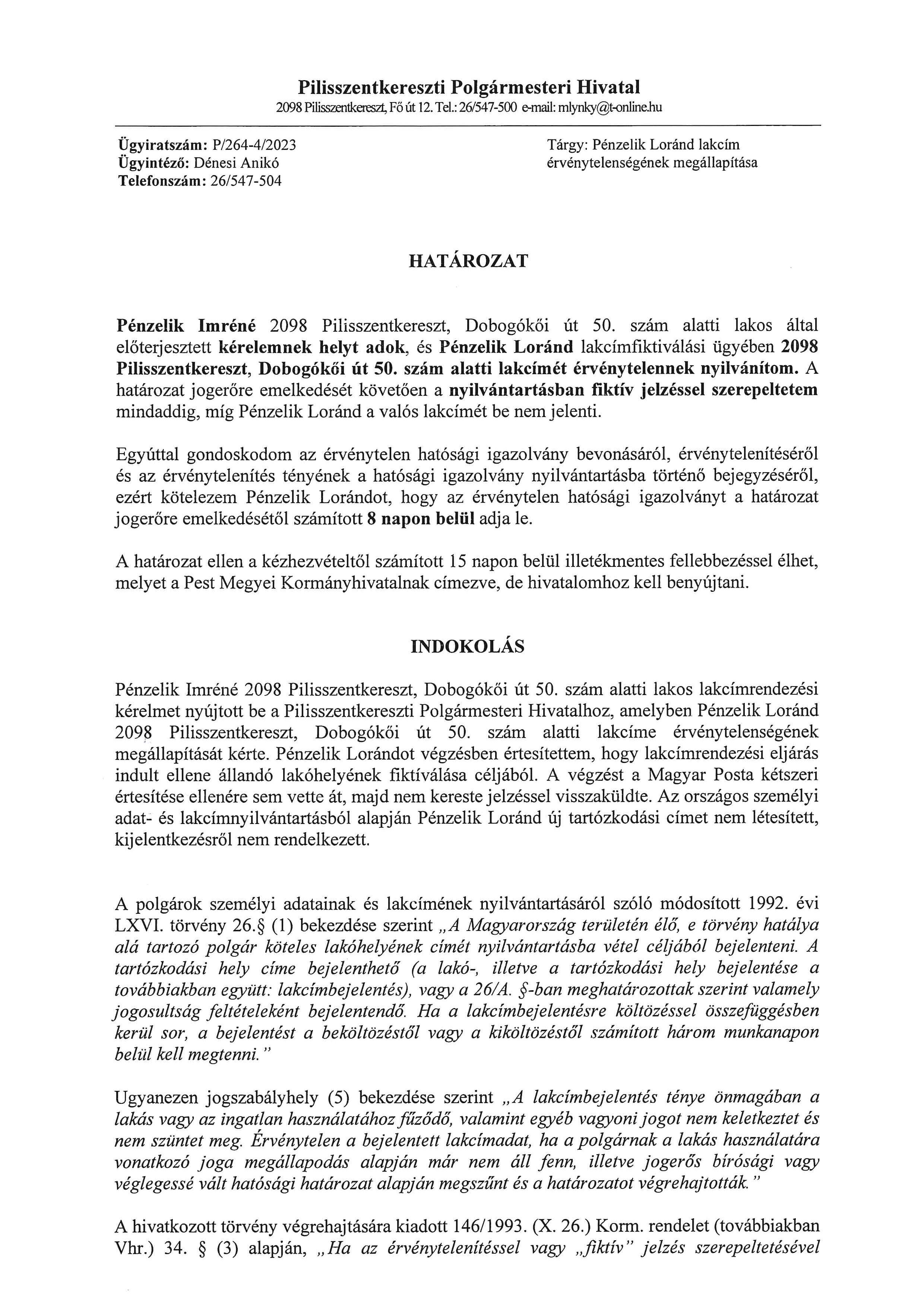 Az ülés helye: Pilisszentkereszt, Fő út 14.