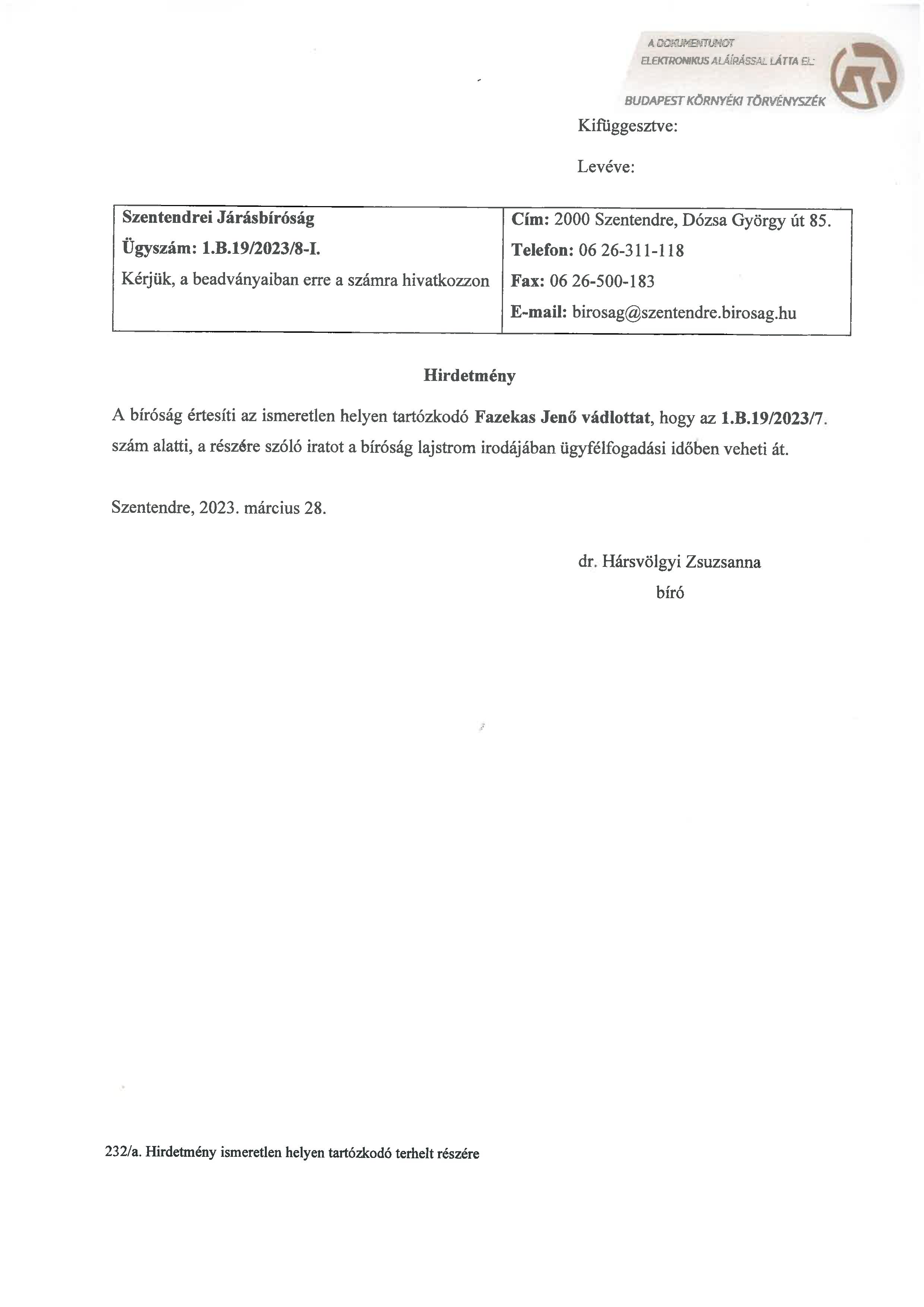 2023. május 2-től (kedd) május 5-ig (péntek) 8:00-17:00 óra között