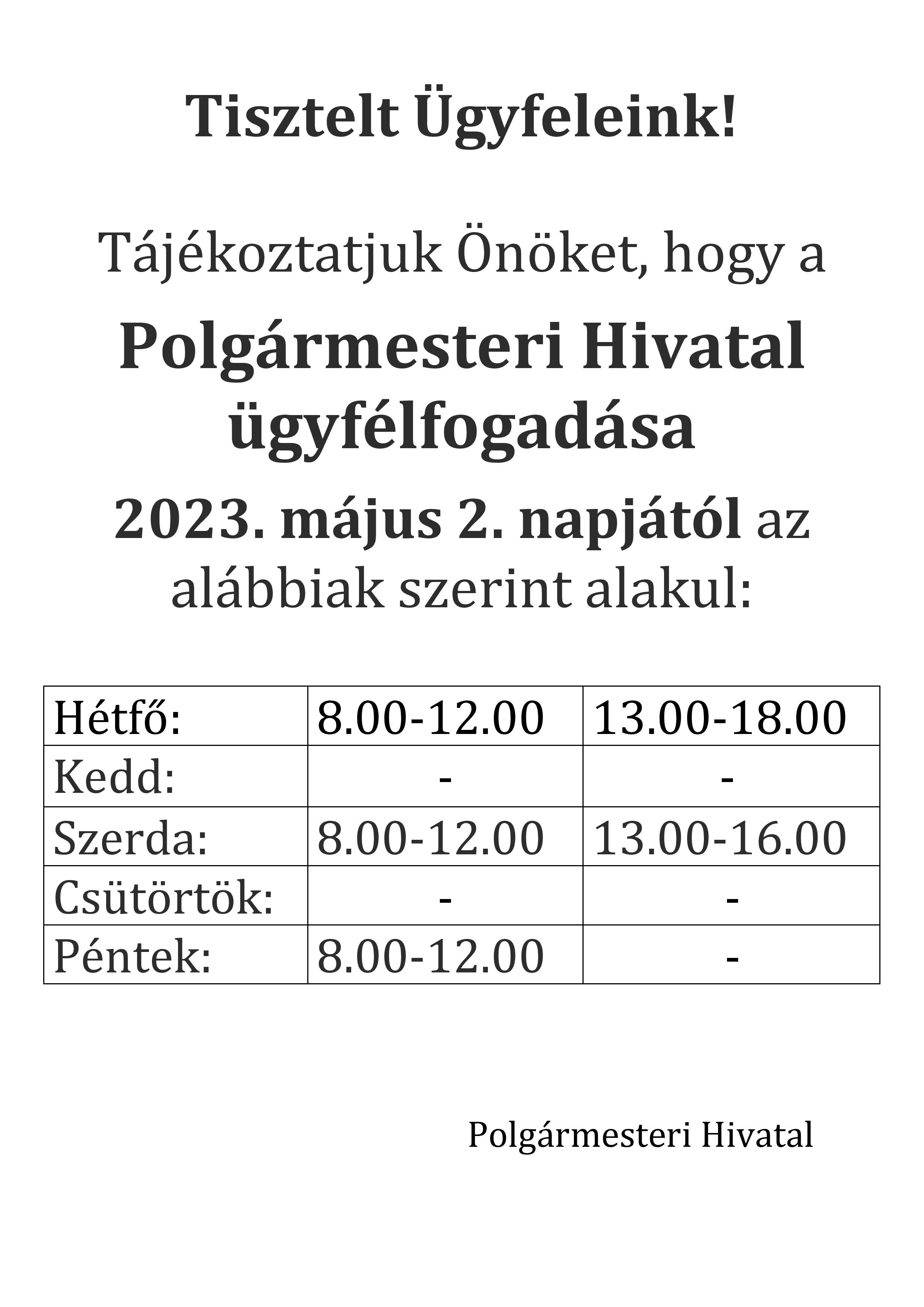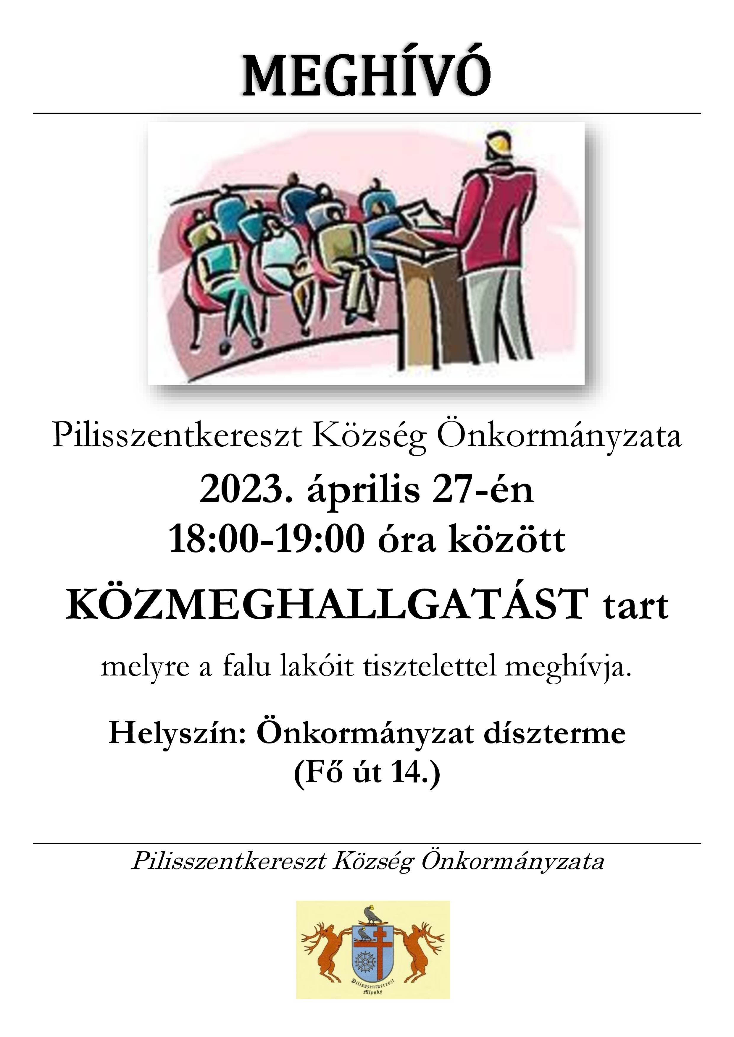 2023. április 27-én (csütörtök) 18.00 órakor testületi ülést tart, melyre tisztelettel meghívom.